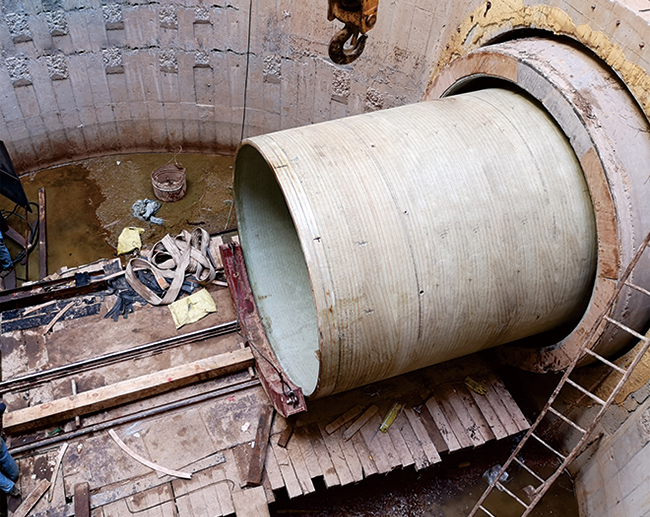 擁有國際領先水平的玻璃纖維增強塑料夾砂管(連續(xù)纏繞工藝)生產線 5條,年產管道6萬噸。